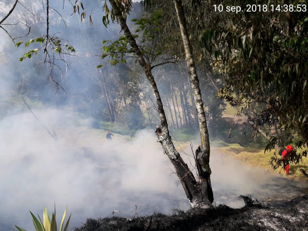 Después, a las 14:51, en el sector Quindigua, una nueva alerta de incendio forestal activó la coordinación entre el ECU 911 y Bomberos. Personal de esta institución de socorro informó que se trató de una quema de pajonal en donde se consumió siete cuadras.