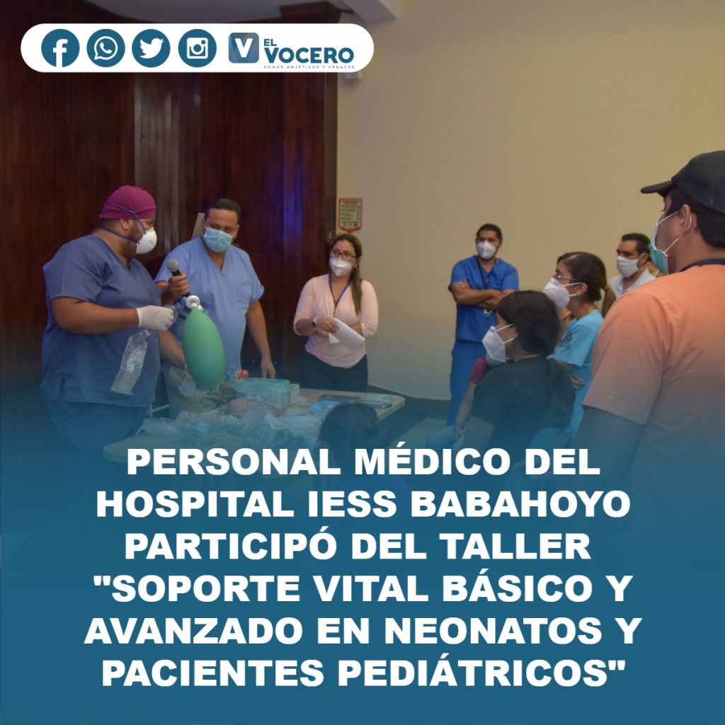 Hoy en el Hospital del IESS Babahoyo se efectuó el taller teórico-práctico sobre «Soporte vital básico y avanzado en neonatos y pacientes pediátricos», participaron médicos residentes y terapeutas respiratorios del nosocomio con el objetivo de mejorar los tiempos de respuesta en la atención.