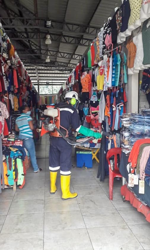 Seguimos reforzando las actividades de fumigación y desinfección. Durante el día se realizó este proceso en la Bahía y zona comercial de este cantón, en donde se concentra la mayor cantidad de personas debido a la época festiva del año.