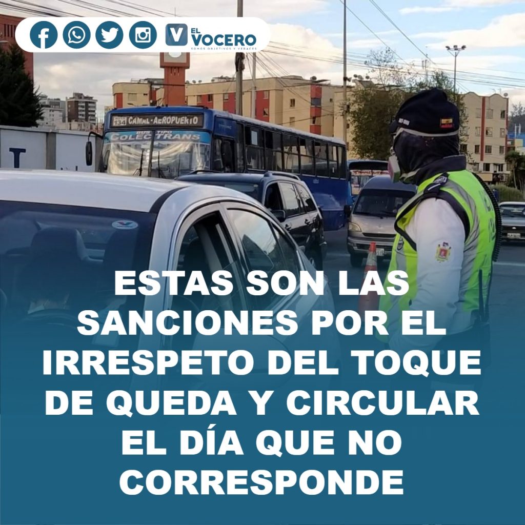 Sobre sanciones al irrespeto del toque de queda, Juan Zapata, director del ECU911 y presidente del COE mencionó que habrá multas de $100 la primera vez , $200 la reincidencia y por tercera ocasión la privación de libertad.
