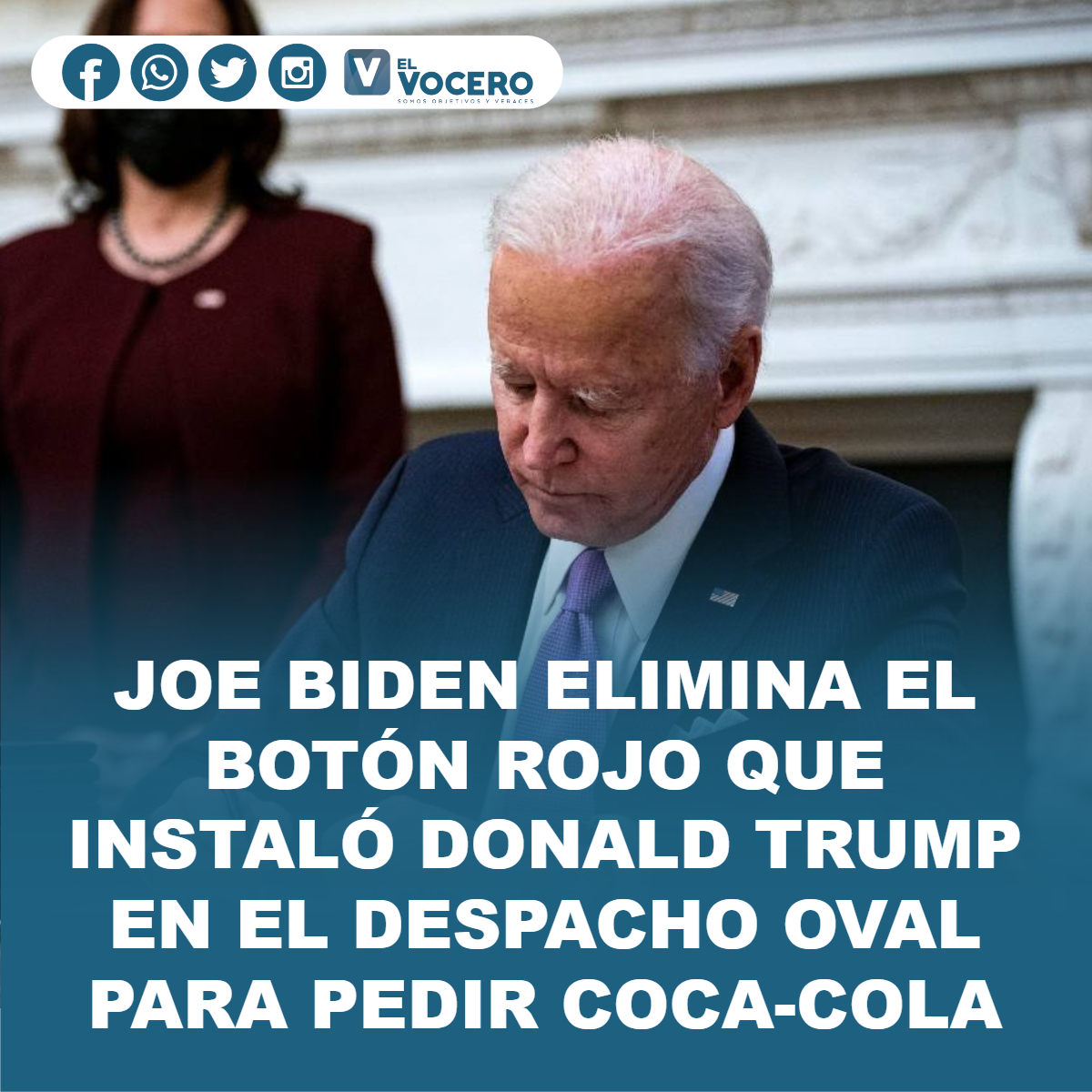 Horas después de que el exmandatario Donald Trump abandonara la Casa Blanca, un misterioso botón rojo que había mandado instalar, no para emergencias, sino para avisar de que se había quedado sin su bebida favorita, la Coca-Cola light, desapareció del escritorio que ahora ocupa el nuevo presidente de EE. UU., Joe Biden, en el Despacho Oval.