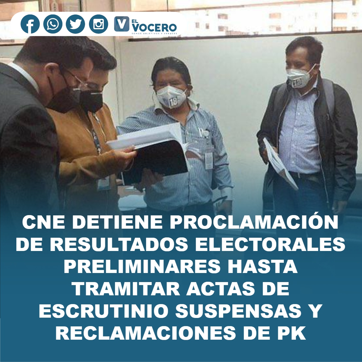 Antes de proclamar resultados preliminares de las elecciones del 7 de febrero, el Consejo Nacional Electoral (CNE) deberá tratar las reclamaciones al conteo numérico que interpuso el movimiento político Pachakutik (PK) que auspicia la candidatura presidencial de Yaku Pérez Guartambel y otras actas que registraron cortes en la imagen durante el escaneo que se realiza en el Sistema Informático de Escrutinio y Resultados (SIER).