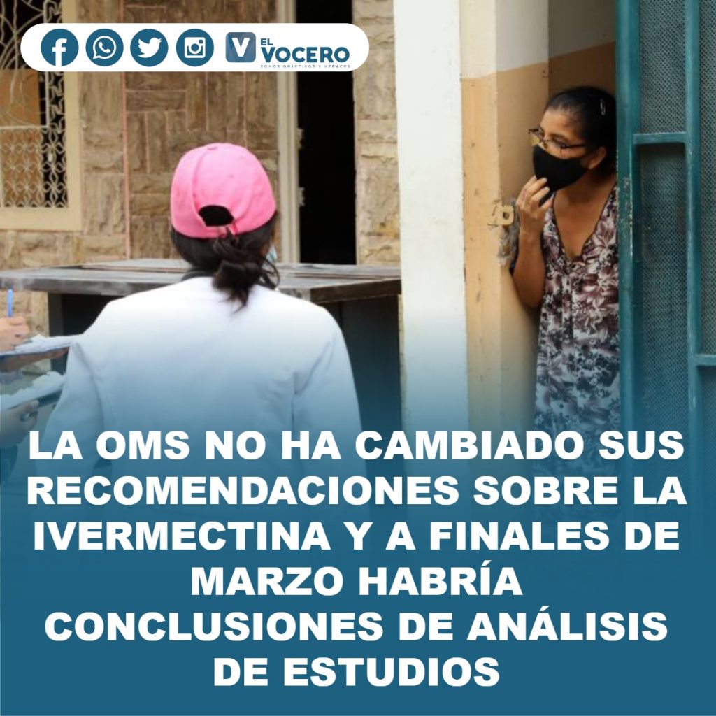 En una rueda de prensa ofrecida por la OMS el 15 de febrero pasado, la epidemióloga María Van Kerkhove dijo que un equipo clínico del organismo analiza datos sobre diferentes estudios que han evaluado la ivermectina.