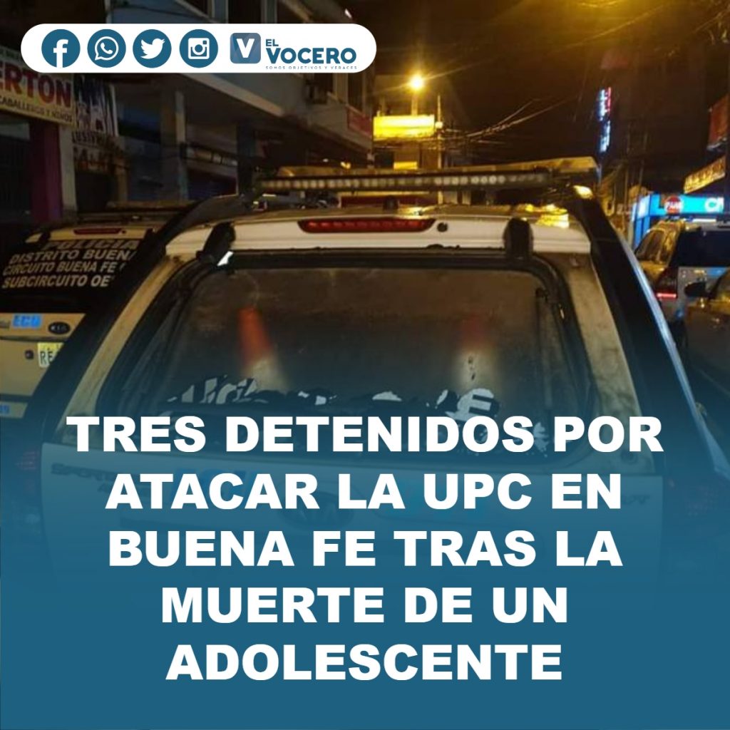 Tres ciudadanos de 23, 24 y 18 años se encuentran detenidos para las investigaciones y para determinar las responsabilidades por los disturbios registrados la noche del domingo 21 de enero en el cantón Buena Fe, en la provincia de Los Ríos.