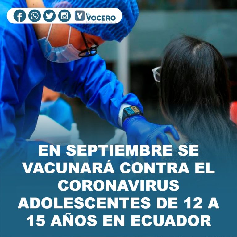 EN SEPTIEMBRE SE VACUNARÁ CONTRA EL CORONAVIRUS ADOLESCENTES DE 12 A 15 AÑOS EN ECUADOR