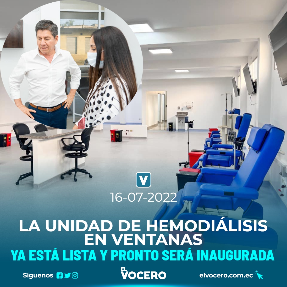 «Me complace anunciar que la Unidad de Hemodialisis de este cantón se encuentra lista para ofrecer sus servicios y pronto será inaugurada. Junto a la Econ. Sonia Velarde, concejal del cantón y funcionarios de la Unidad, realizamos un recorrido por las instalaciones.», detalló Terán.
