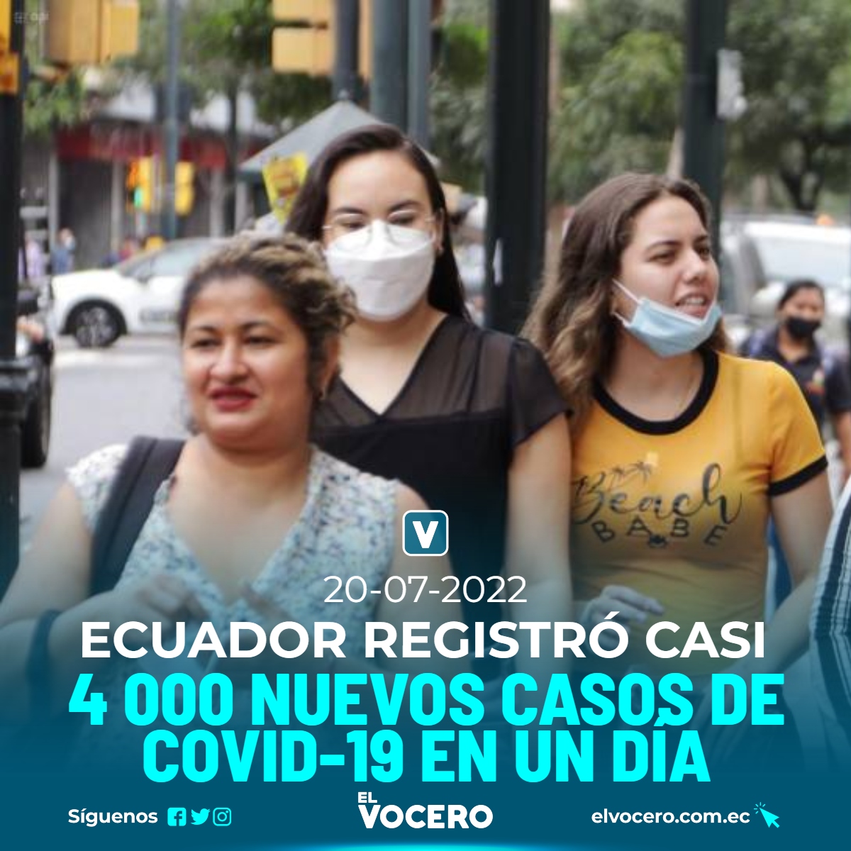Hasta el martes 19 de julio del 2022, Ecuador registró 3 952 nuevos contagios de covid-19, lo cual elevó su acumulado durante la pandemia a 940 179 casos, según informó el Ministerio de Salud Pública (MSP) en su último informe epidemiológico.