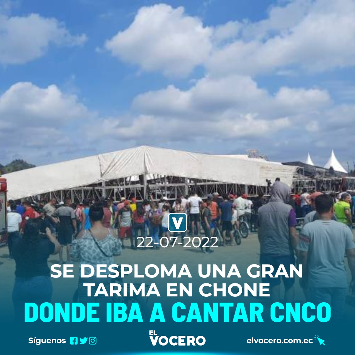La tarde de este viernes, 22 de julio, se reportó la caída de una gran tarima en Chone, provincia de Manabí, a pocas horas de realizarse una serie de conciertos para festejar su cantonización, que se conmemora el lunes 25.