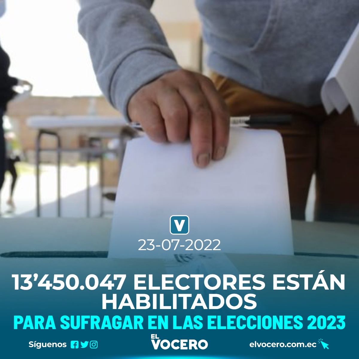 Del total de electores habilitados, 13’040.797 podrán sufragar en el territorio nacional, mientras que 409.250 personas están facultadas para ejercer su derecho al voto en el exterior, quienes participarán –únicamente– en la elección de consejeras y consejeros del CPCCS.