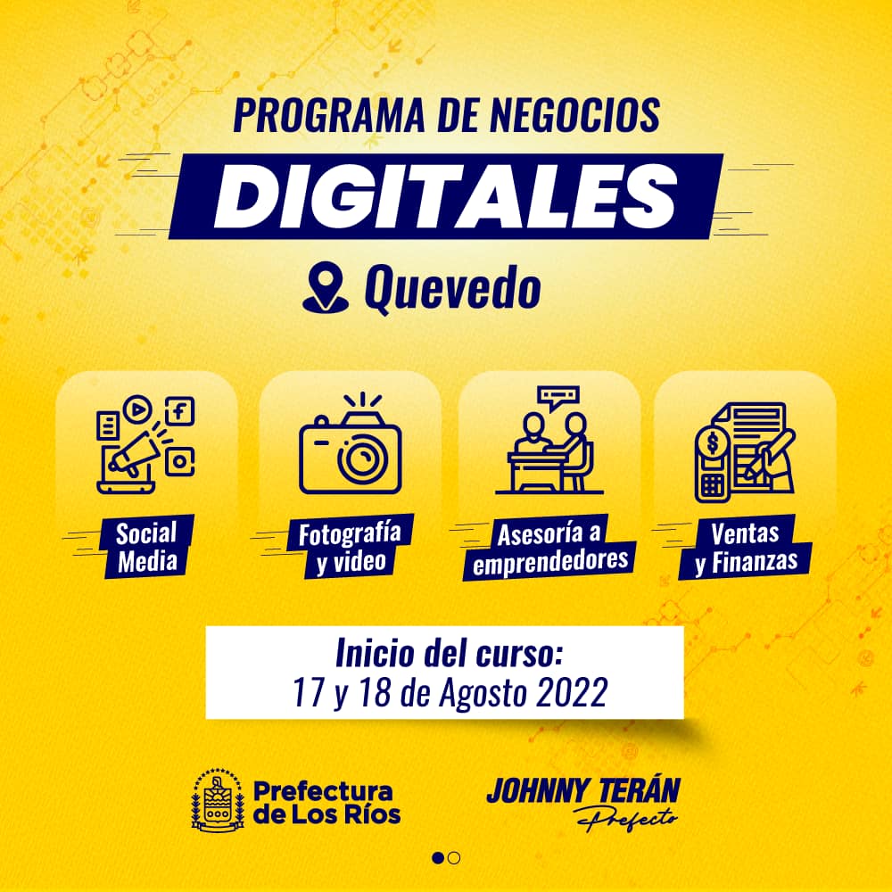 Para más información e inscripciones: emprendelosrios@losrios.gob.ec o acercarse al Centro de Emprendimiento ubicado en Quevedo, parroquia San Camilo.
