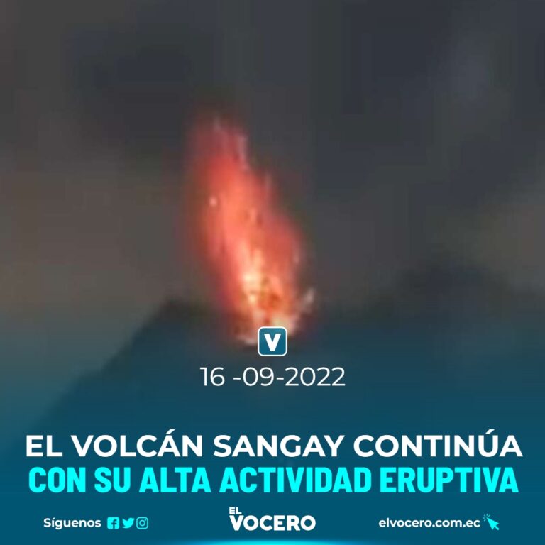Las cámaras de ECU 911 capturaron el momento en el que el volcán Sangay lanzaba material incandescente, dentro del proceso eruptivo que mantiene. Con el cielo despejado es fácil divisarlo a la distancia, sobre todo en la noche que es cuando brilla por la lava que emerge.