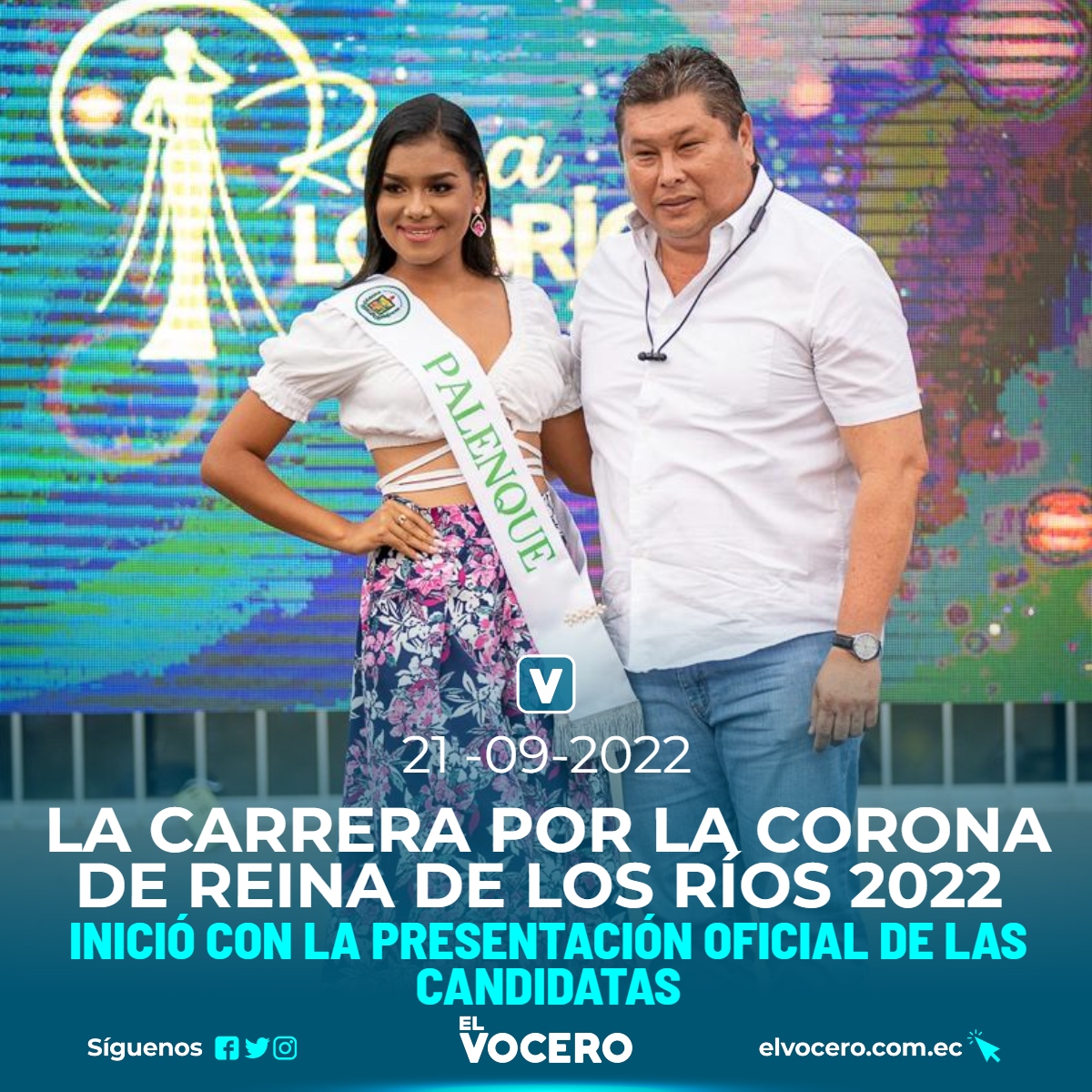 Con la presentación oficial de las trece hermosas candidatas, efectuada este último fin de semana en el cantón Urdaneta, se inician las actividades previas de lo que será la Elección y Coronación de la Reina de la Provincia de Los Ríos 2022, que se realizará el próximo sábado 1 de octubre, en el Parque Deportivo Municipal de Babahoyo, de la capital fluminense.