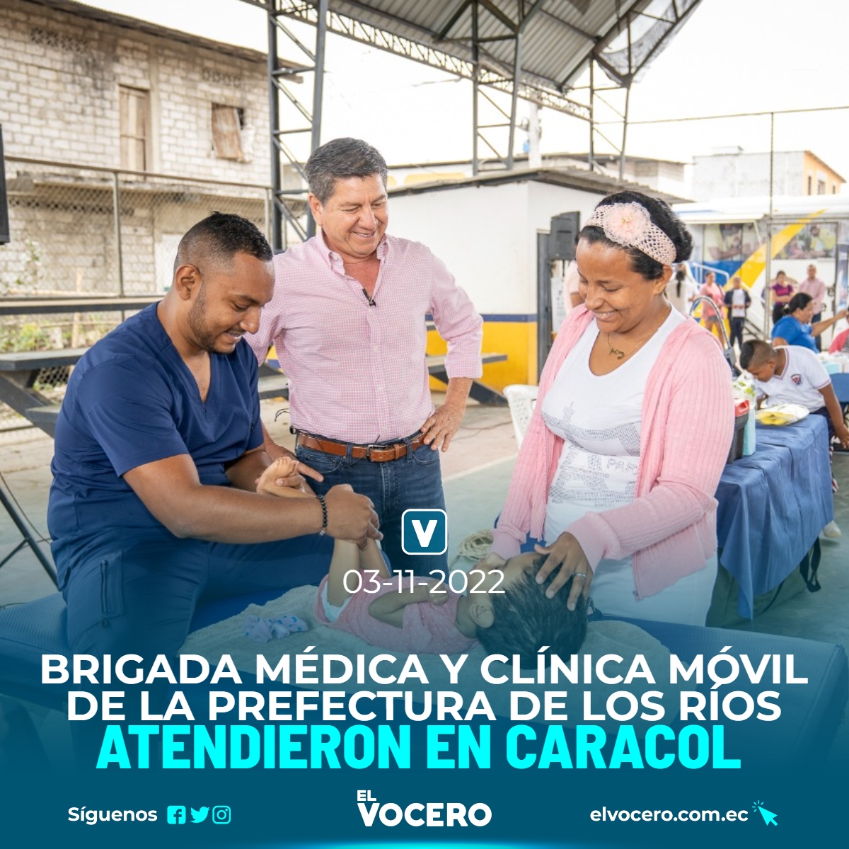 El Prefecto de Los Ríos Johnny Terán Salcedo visito la jornada de atención gratuita en beneficio de la salud de los moradores que habitan en los sectores 14 de julio, 20 de noviembre, El Amparo, Cañaveral y demás comunidades aledañas, pertenecientes a la parroquia Caracol.