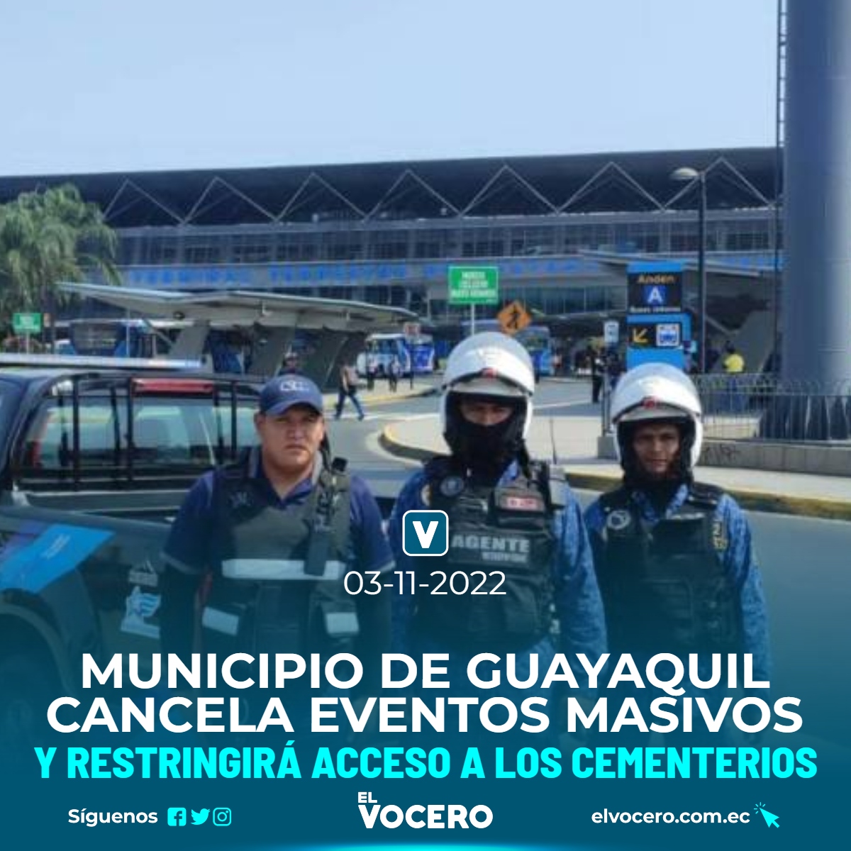 Como medida preventiva, después de múltiples ataques con coches bomba, el Municipio de Guayaquil también decidió que el acceso a los cinco cementerios que hay en la ciudad será restringido al tránsito vehicular y solo se permitirá el ingreso a pie durante el feriado por el Día de los Difuntos.