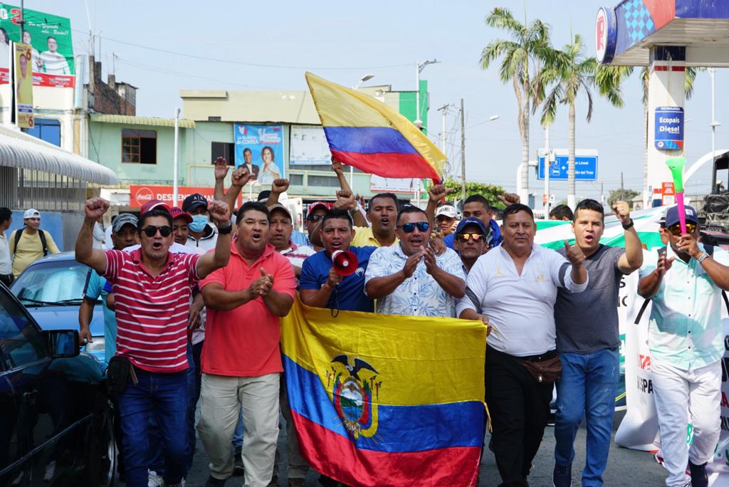 “¡Fuera camaronera. Sí a la carretera!”. Este fue el grito generalizado de decenas de agricultores y transportistas que se agruparon en los bajos de la Unidad Judicial Multicompetente del cantón Yaguachi, en donde se tramita una acción de protección interpuesta por la compañía Camarones y Langostinos del Mar, Calademar S.A., en contra de la construcción del Paso Lateral Babahoyo – Jujan.