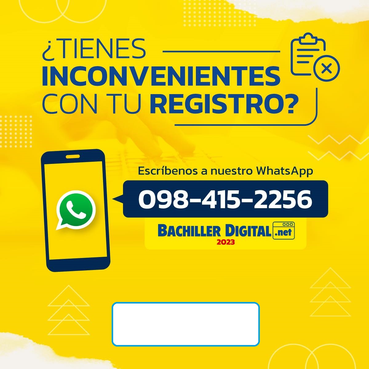 ¡Atención bachilleres de Los Ríos! Hemos puesto a su disposición una vía de comunicación directa a través del WhatsApp para el proceso de su registro en la plataforma bachillerdigital.net Contáctate con un asesor 098-415-2256