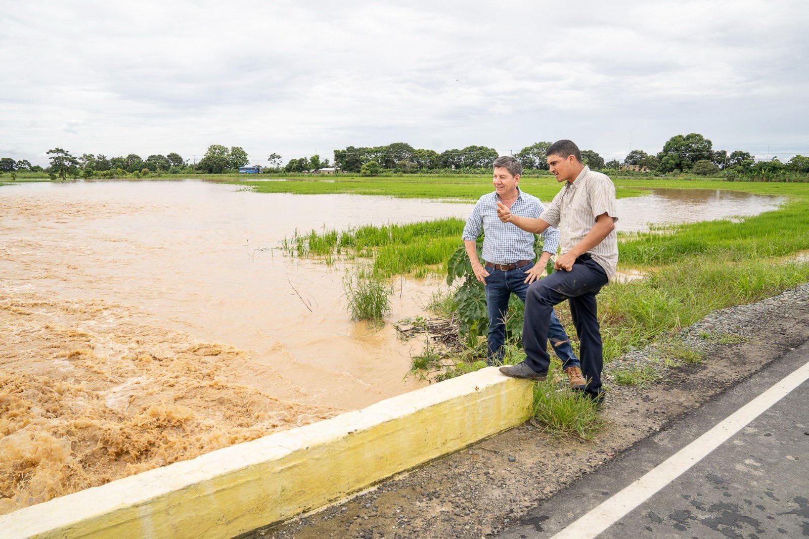 El prefecto de Los Ríos recorrió la vía La Represa – Río Chico – Montalvo – Babahoyo, para evaluar junto con el equipo técnico la situación invernal que afecta a varias familias.
