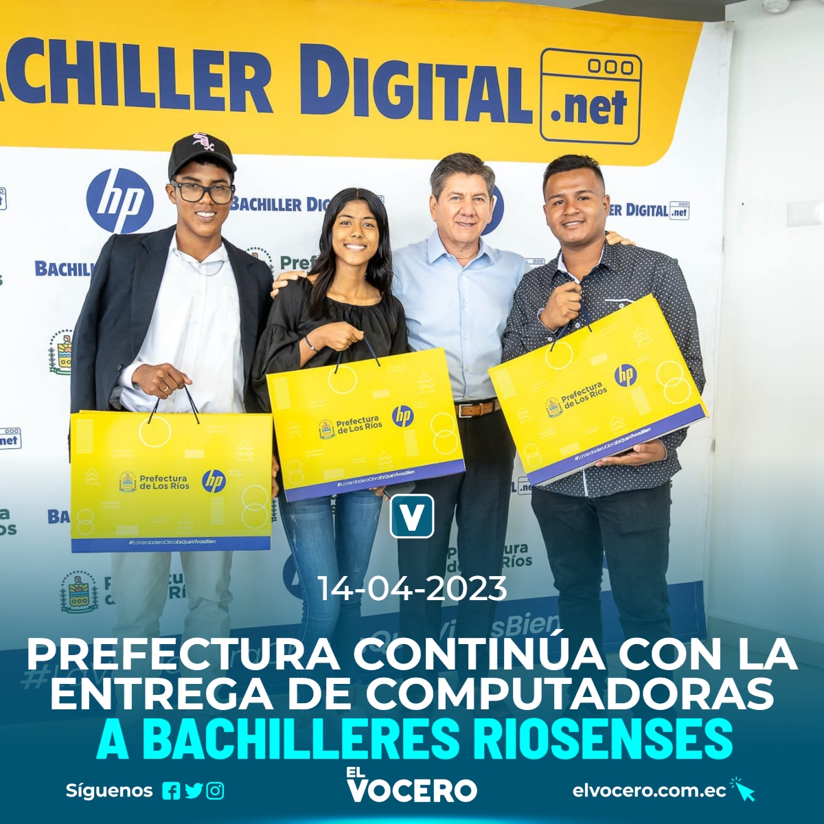 La Prefectura de Los Ríos retomó, desde este miércoles 12 de abril, la entrega de computadoras portátiles a los bachilleres que no recibieron esta importante herramienta tecnológica, a través del programa Bachiller Digital, iniciativa del prefecto, Johnny Terán Salcedo.El prefecto de Los Ríos, Johnny Terán Salcedo, explicó que en esta última fase se realiza la entrega de los equipos de acuerdo con un cronograma debidamente establecido, donde se incorpora a Unidades Educativas de cantones de Babahoyo, Montalvo, Baba, Puebloviejo, Urdaneta, Ventanas y Vinces.