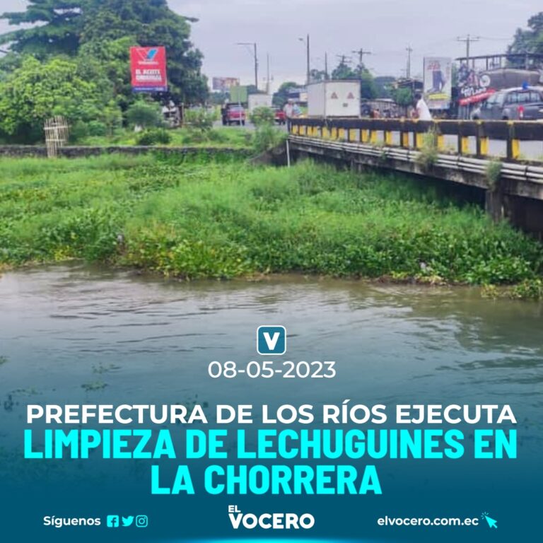 Maquinaria de la Prefectura de Los Ríos realiza trabajos de limpieza de lechuguines en el puente del sector La Chorrera de esta localidad.