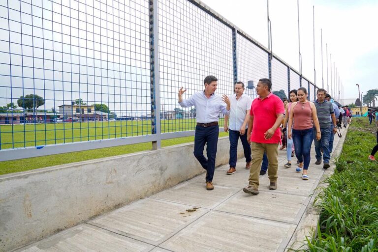 Durante este último fin de semana, el prefecto Johnny Terán se trasladó hasta el recinto Nueva Zulema, donde se realiza el cerramiento perimetral de la cancha de fútbol del sector. Los trabajos contemplan, además, iluminación tipo led, mallas de protección, aceras y bordillos, entre otras adecuaciones.