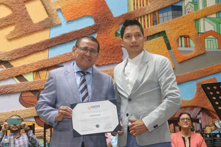 El Consejo de Aseguramiento de la calidad de la Educación Superior CACES, entrega el certificado respectivo a nuestra institución como parte de la acreditación de la carrera de Enfermería modalidad presencial luego de la evaluación realizada por esta entidad.
