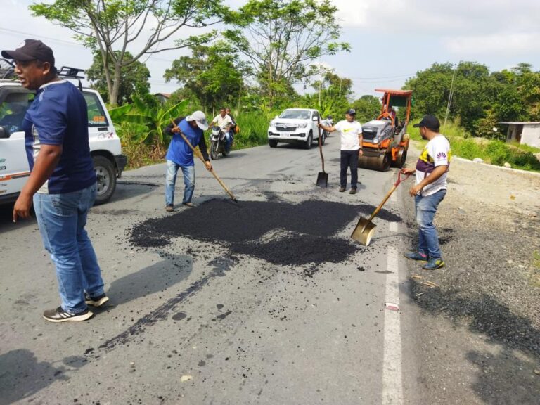 A la altura del recinto San Antonio del cantón Vinces, la Prefectura de Los Ríos realiza trabajos de mantenimiento vial, fresado, barrido y colocación de asfalto caliente, con el objetivo de mejorar la calzada que se encuentra en mal estado.