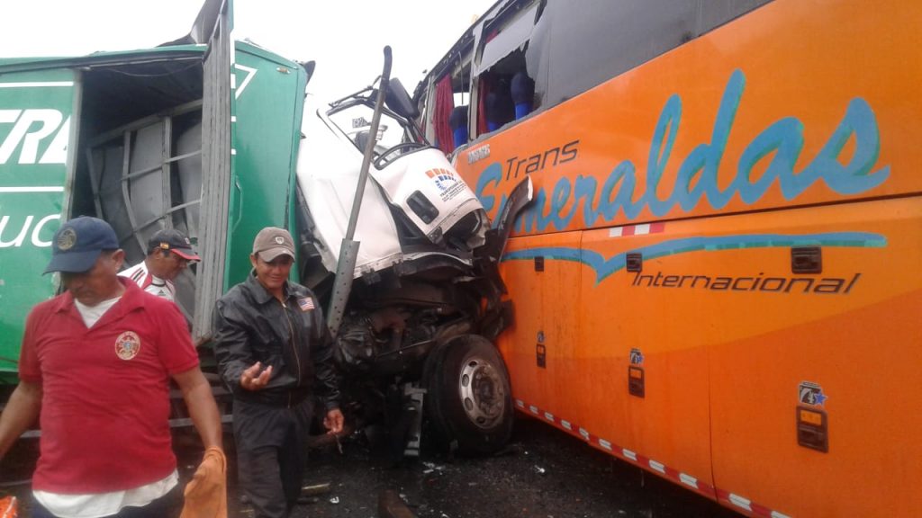 La madrugada de este viernes a la altura de Zapotal Nuevo se registró un nuevo accidente de tránsito entre un camión y un bus de la cooperativa Trans Esmeralda.