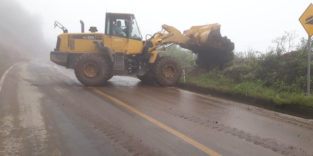Operadores, ayudantes y técnicos del MTOP, trabajan permanentemente con equipo caminero, para contrarrestar las afectaciones del invierno en esta y otras arterias viales de la provincia, con el objetivo de garantizar la transitabilidad y seguridad de los usuarios.