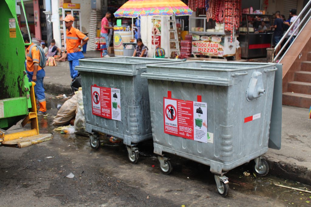 La distribución de los contenedores, de un metro cúbico y diez de veinte metros cúbicos, se da en lugares donde se genera bastante basura como el Mercado del Río y en la calle Octava entre Malecón y Bolívar, allí se ubicaron cuatro contenedores de un metro cúbico cada uno.