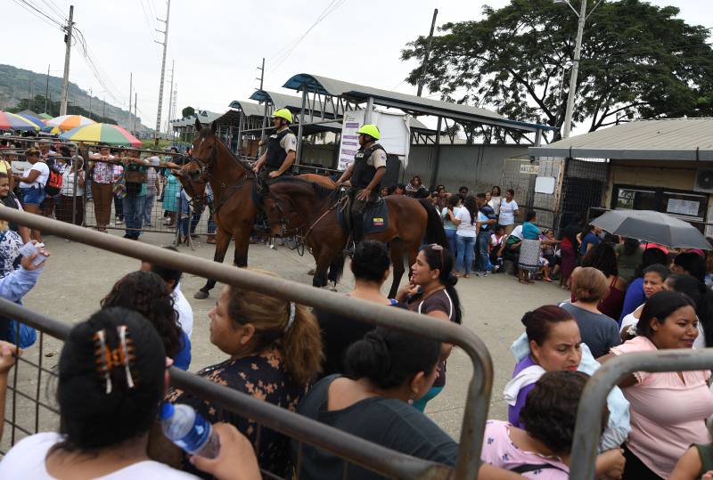 En los exteriores del recinto carcelario estaba la Policía Montada y militares junto a las largas filas de familiares que esperaban ingresar para visitar a los presos. Se les indicó que por la novedad, las visitas estaban canceladas.