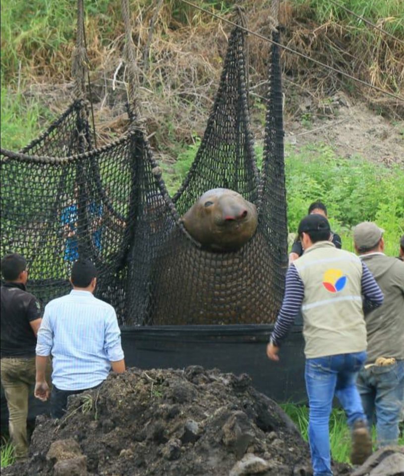 La tarde de este martes el elefante marino atrapado en el estero Colorado del sector la Chorrera en Babahoyo, en Los Ríos, fue levantado semidormido dentro de una malla con ayuda de una excavadora para trasladarlo hasta un volquete y llevarlo a una zona costera en Posorja. Así lo informaron técnicos del Ministerio del Ambiente (MAE).