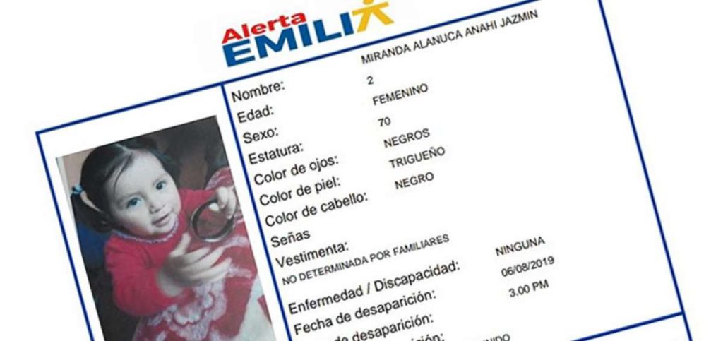 Desaparición de una niña de 2 años en Quito activa la Alerta Emilia