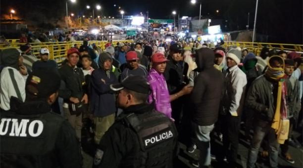 Entre las 13:07 y las 19:43 el carril de paso de Ecuador a Colombia permaneció obstaculizado por un grupo de ciudadanos venezolanos que no pudieron ingresar al país por la implementación del visado.