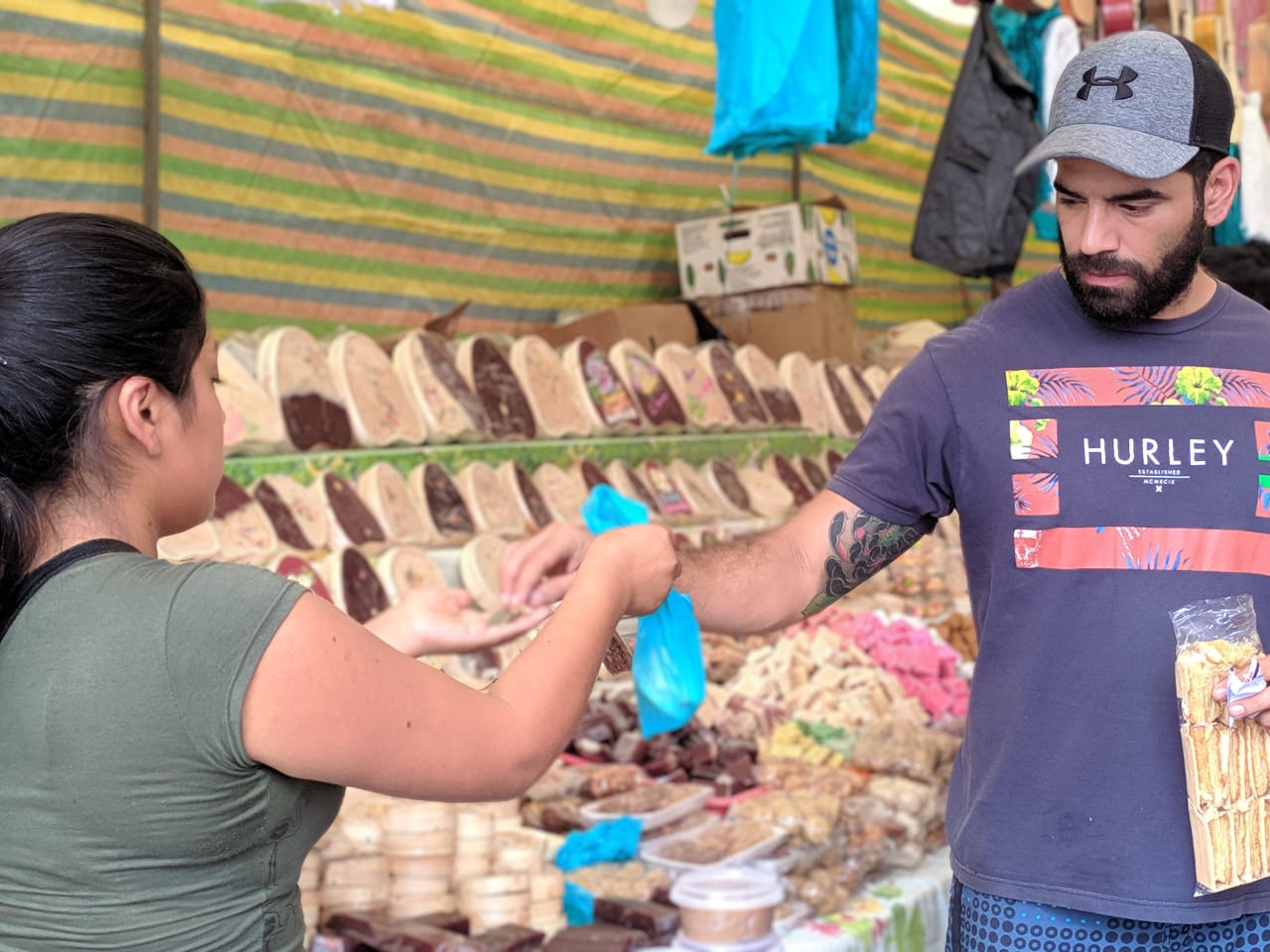 «Desde el día sábado me instalé y me quedaré hasta el miércoles, gracias a Dios durante el fin de semana las ventas han estado buenas, pero vamos a ver mañana que es el día principal para poder sacar por lo menos de lo que nos ha costado el puesto» comenta entre risas Fanny.