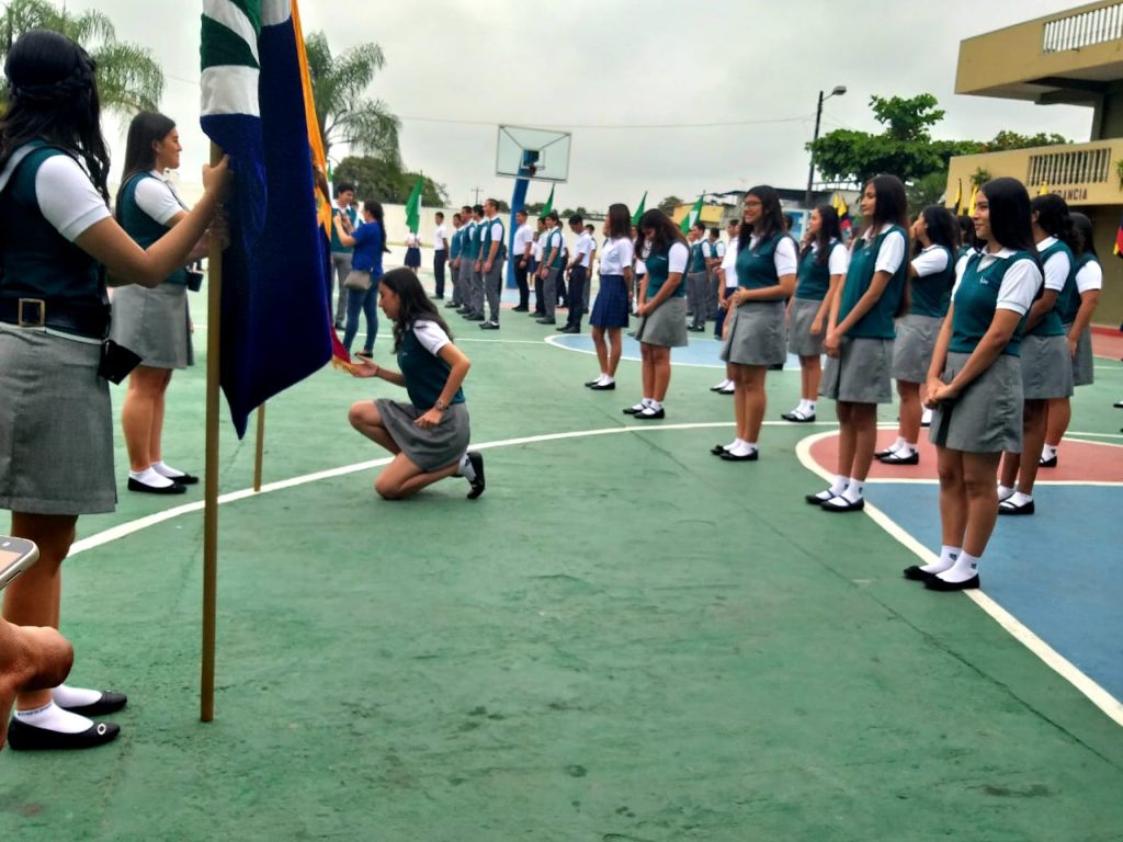 Es así como cargada de emoción la estudiante Jenifer Alibache abanderada de la Unidad Educativa Ecomundo asume con orgullo la Bandera tricolor expresando que: «En este día la vida me privilegia con el honor de portar el hermoso emblema de mi patria, reconozco este logro que tiene una mezcla de amor, paciencia, exigencia, y fe» .