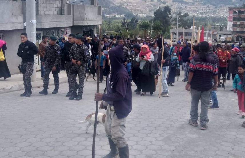 Según versiones preliminares serían 10 los uniformados que supuestamente están retenidos en la comunidad de Huaycopungo en la parroquia González Suárez de Otavalo.
