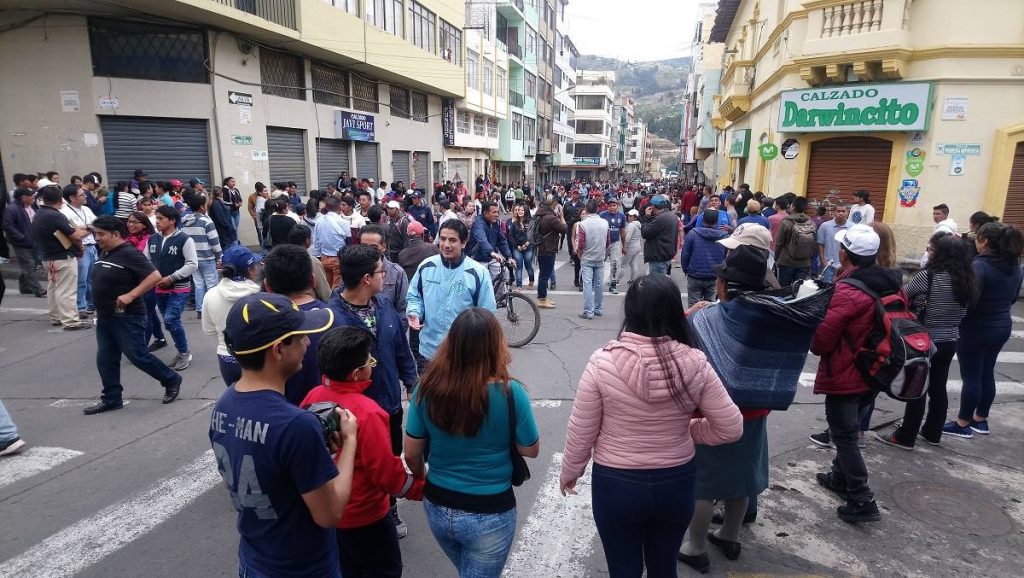 Según transcurría la mañana grupos de manifestantes realizaron un recorrido por las calles céntricas de la urbe ambateña, así como de plazas y mercados obligando a los comerciantes a cerrar las puertas de los locales, quienes temían saqueos por lo que se apresuraron a bajar las puertas lanfor.