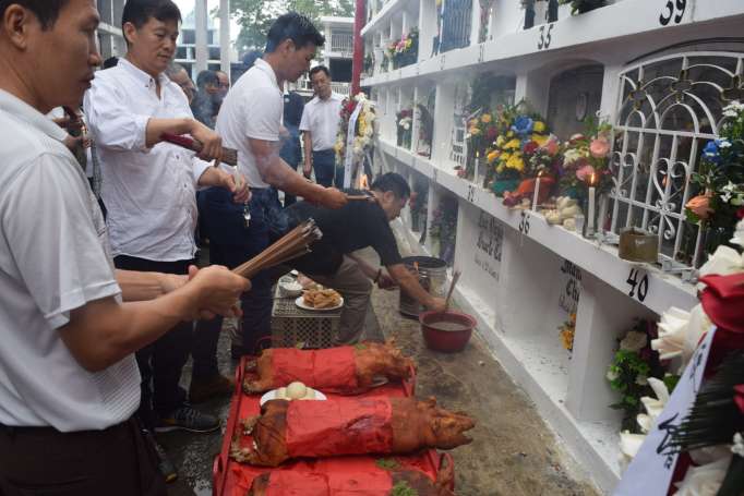 “Desde hace 67 años lo hacemos porque somos paisanos. Es la costumbre, cuando se va al cementerio llevamos la comida para brindarles a los ancestros, nos imaginamos que ellos tienen buena comida”, dijo Chong.