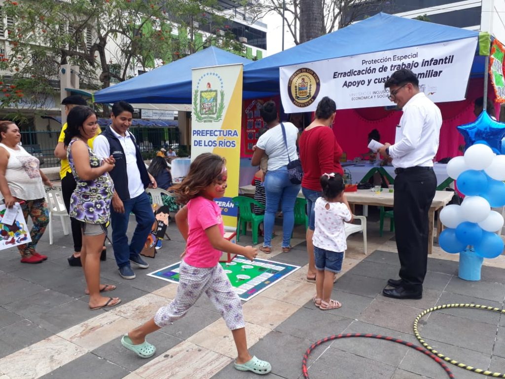 Con el fin de concienciar sobre la problemática del trabajo infantil, técnicos de la Dirección de Desarrollo Social, del Gobierno de Los Ríos, instalaron una carpa lúdica en el parque central de Quevedo, en la que los ciudadanos pudieron interactuar y conocer diversos aspectos relacionados con la misma.