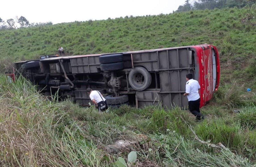 Trece pasajeros de un bus de la cooperativa Flota Manabita resultaron heridos la tarde de ayer miércoles en un accidente de tránsito ocurrido en el kilómetro 48 de la vía El Carmen – Pedernales.