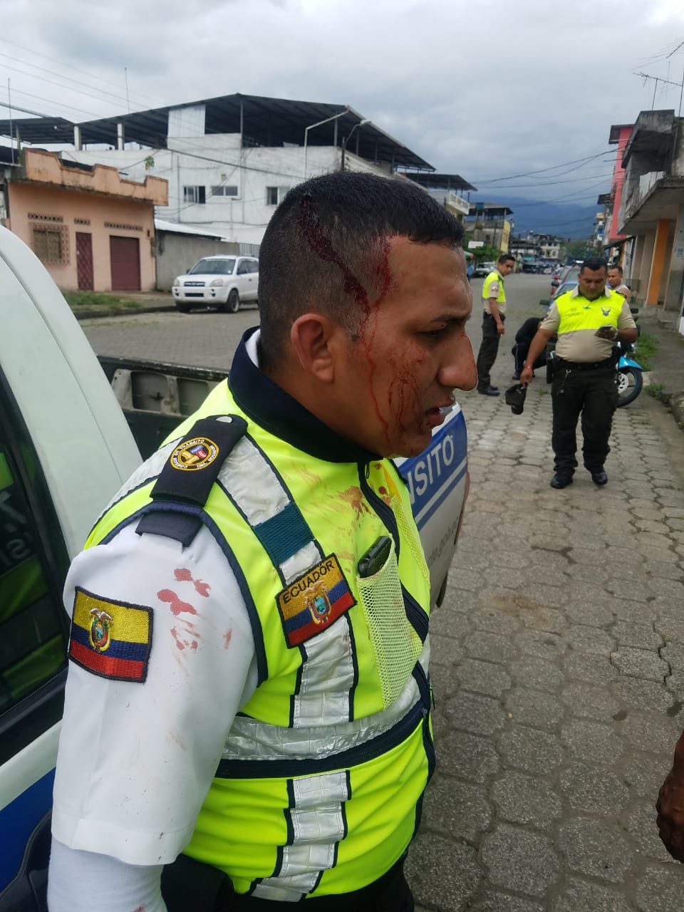 El ciudadano fue detenido. La Gobernación de Los Ríos posteó fotos en el que ve a un uniformado de la CTE con huellas de sangre en la cabeza. (I)