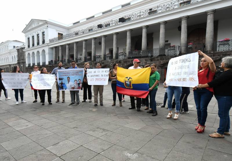 Algunos familiares se concentraron frente al Palacio de Carondelet para pedir al Gobierno que haga las gestiones necesarias de retorno de los estudiantes.