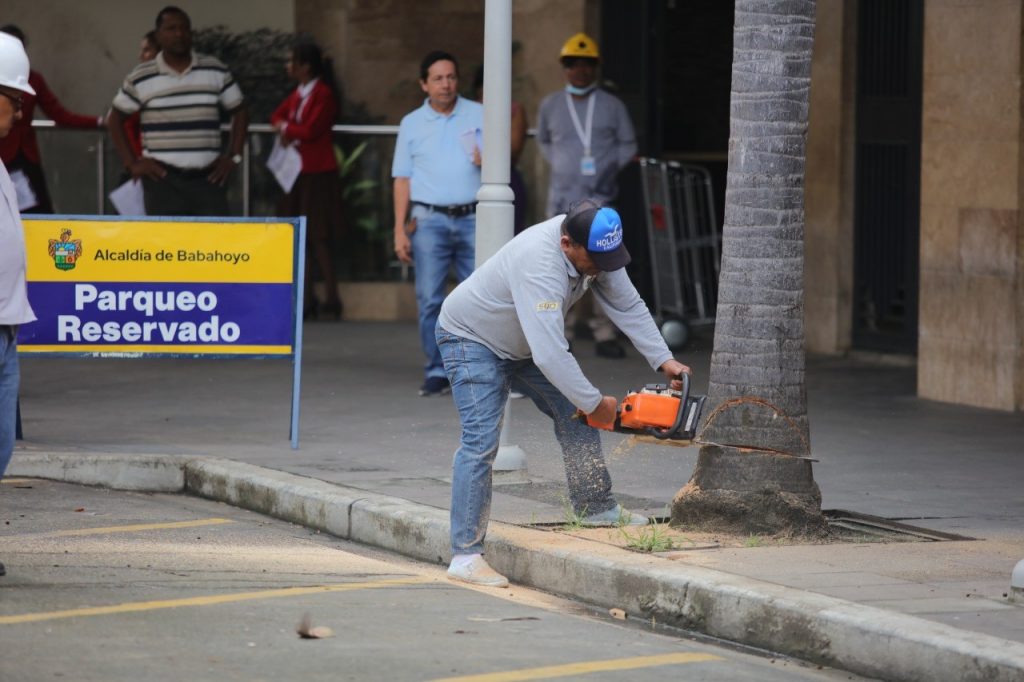 “Hemos procedido con cautela, retirando una palmera que estaba muerta, y junto al trabajo mancomunado hemos podido tener éxito en este trabajo, tenemos algunos sectores donde existen palmeras y arboles demasiado crecidos a los cuales podaremos o retiraremos dependiendo su estado”, expresó Jimmy Zambrano representante del departamento de Servicios Públicos.