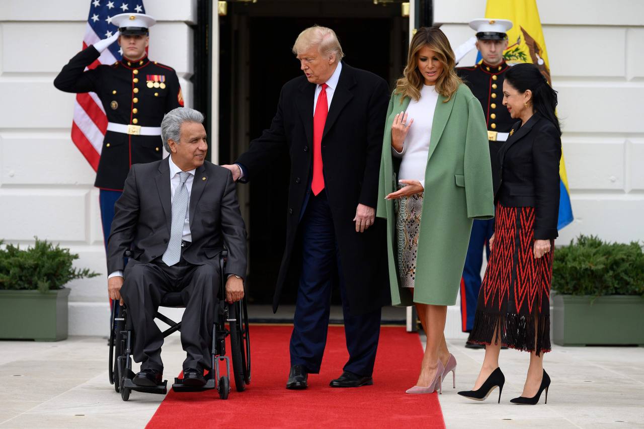A las 14:30 de este miércoles, el presidente Lenín Moreno ingresó a la Casa Blanca con su esposa Rocío González, donde fueron recibidos por el presidente de Estados Unidos (EE.UU.), Donald Trump y la primera dama Melania Trump, con un acto protocolar de por medio y las banderas de los dos países en la puerta de ingreso.