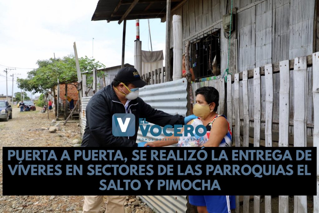 La Alcaldía de Babahoyo en conjunto con el Gobierno de Los Ríos, realizaron la entrega de raciones alimenticias en algunos sectores de las parroquias El Salto y Pimocha, acción que se desarrolló puerta a puerta en el transcurso de esta semana, como parte de la estrategia de atención a la ciudadanía durante la emergencia sanitaria que atraviesa el país y el mundo debido al coronavirus.