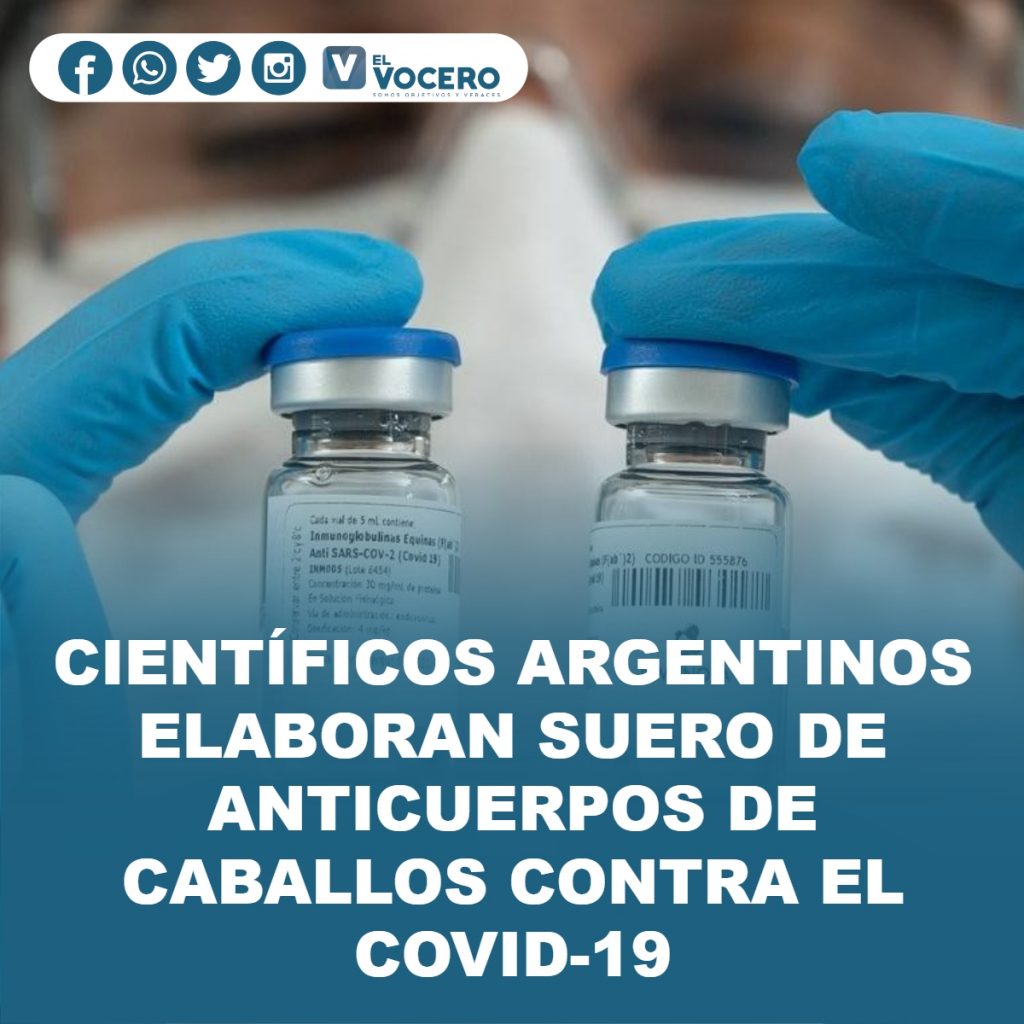 Científicos argentinos esperan probar en humanos el próximo julio un suero elaborado a partir de anticuerpos de caballos; el elemento logró impedir el ingreso del coronavirus SARS-CoV-2 a las células en pruebas de laboratorio.