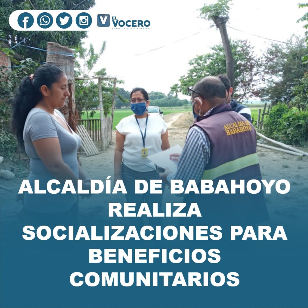 Con la finalidad de poder mantener una comunidad activa y progresista, además prevenida ante los efectos de la pandemia por el covid-19. La Alcaldía de Babahoyo a través de la dirección de Gestión Social, realiza visitas periódicamente a sectores urbanos y rurales, manteniéndose de esta manera el cabildo fluminense como una administración que vela por el progreso de sus ciudadanos.