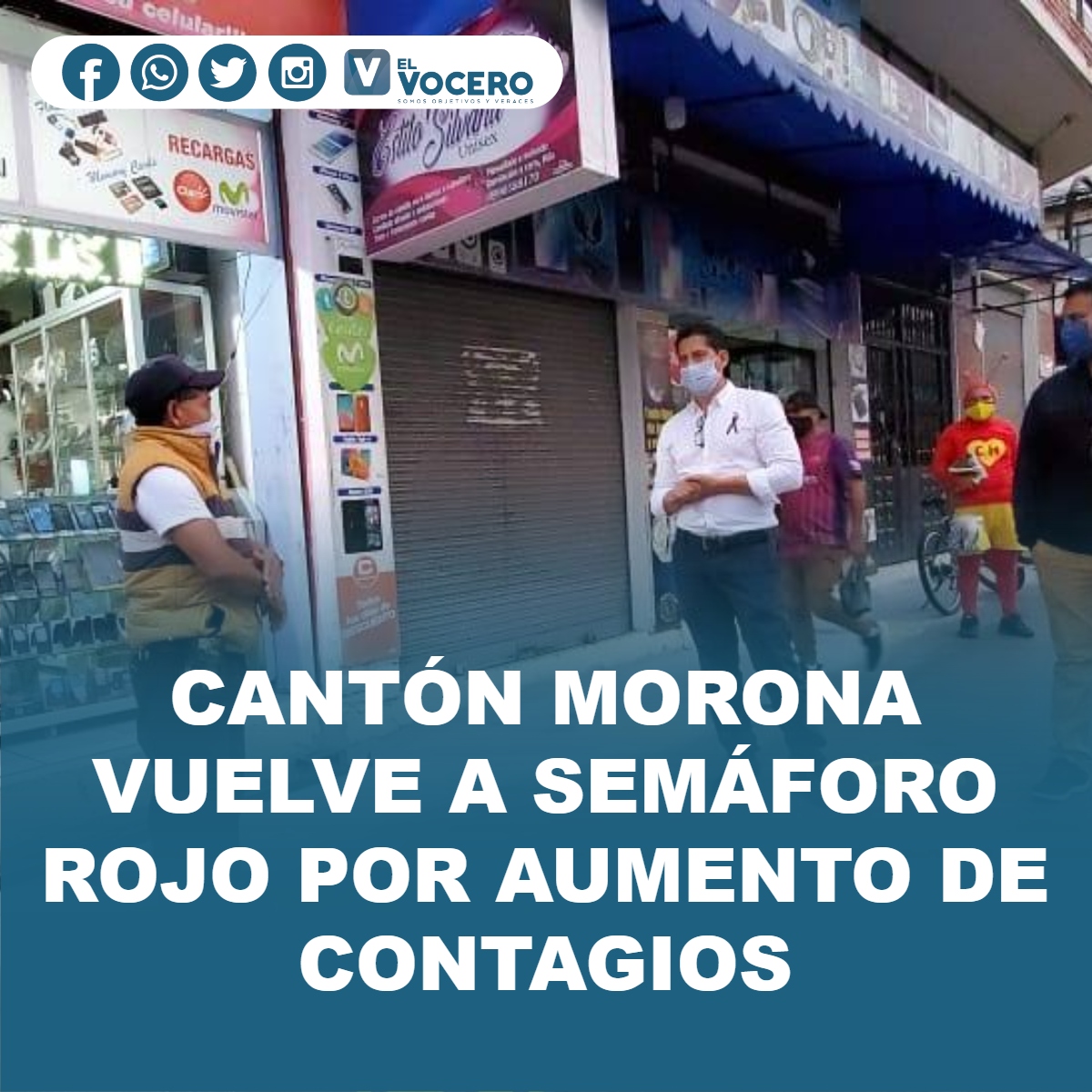 A través de una rueda de prensa virtual, el alcalde del cantón Morona, Franklin Galarza, confirmó que esa localidad retornó hoy a semáforo rojo por el aumento de casos de coronavirus.