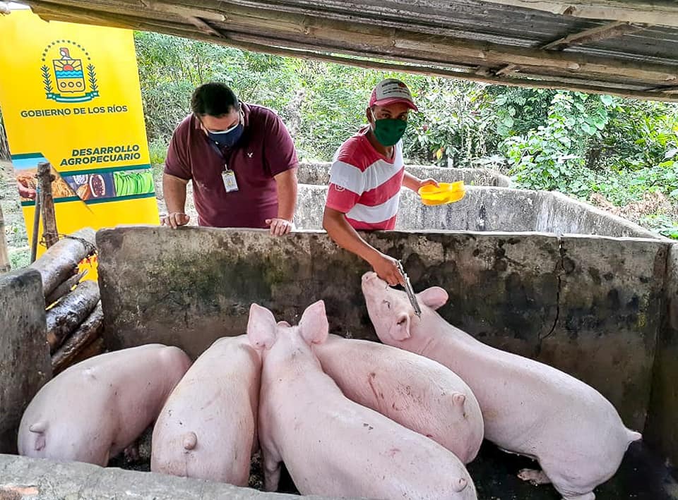 Reactivamos la economía rural a través de los proyectos productivos. En el recinto Los Pantanos, brindamos asistencia técnica veterinaria al proyecto porcícola, mediante la aplicación de multivitamínico para ayudar al desarrollo y fortalecimiento de los cerdos.