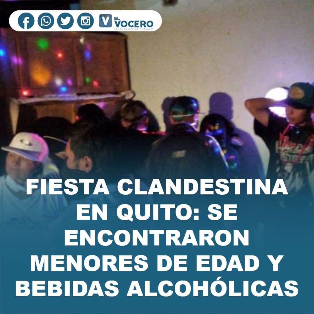 FIESTA CLANDESTINA EN QUITO: SE ENCONTRARON MENORES DE EDAD Y BEBIDAS ALCOHÓLICAS